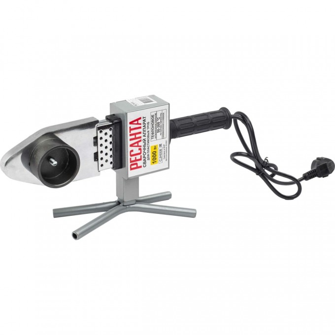 Устройство мощностью 1000 Вт используется для фиксации водопроводных, отопительных труб из пластика между собой раструбной сваркой, которая позволяет добиться надежности и герметичности конструкции. Благодаря мощному нагревательному элементу, АСПТ быстро нагревается до необходимой температуры. За счет автоматического термостата поддерживается оптимальный температурный режим. При достижении заданной температуры (в пределах от 0 до +300 градусов) термостат отключает электропитание, в случае остывания насадок нагрев возобновляется. В комплектацию сварочного аппарата для пластиковых труб входят 6 парных насадок популярных размеров (20-63 мм). Они покрыты тефлоновым слоем, что исключает налипание пластика. Устройство оснащено быстросъемной подножкой, но из-за малого веса может использоваться и без опоры. Аппарат и все насадки уложены в кейс, наличие которого упрощает хранение и переноску.